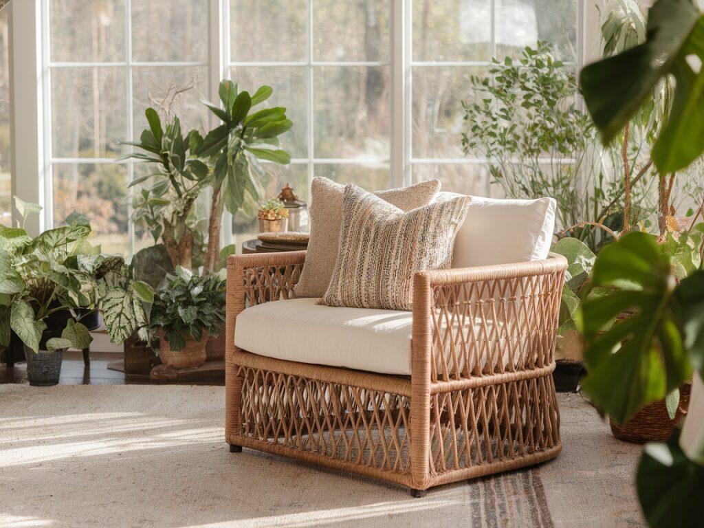 2: Rattan Chair Bringing Boho Vibes to the Sunroom