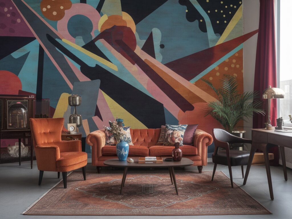 8: Vibrant Mural Wall in an Eclectic Living Room
