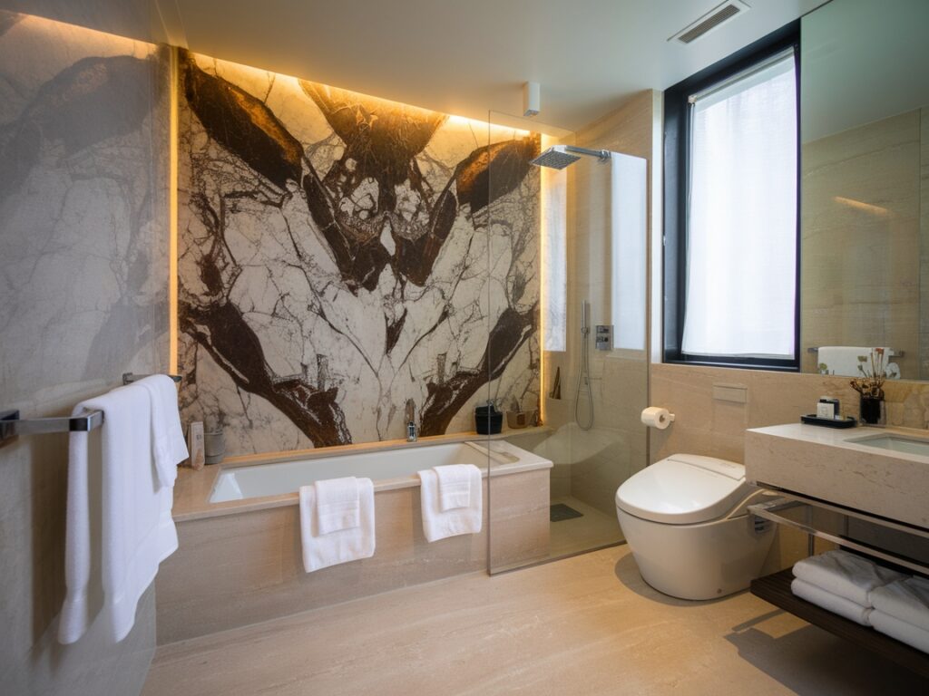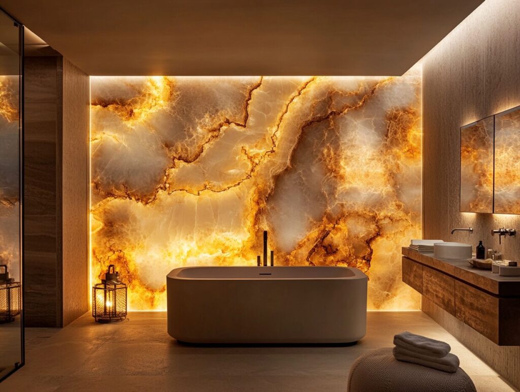 10: LED Backlit Onyx Wall in a Luxurious Bathroom