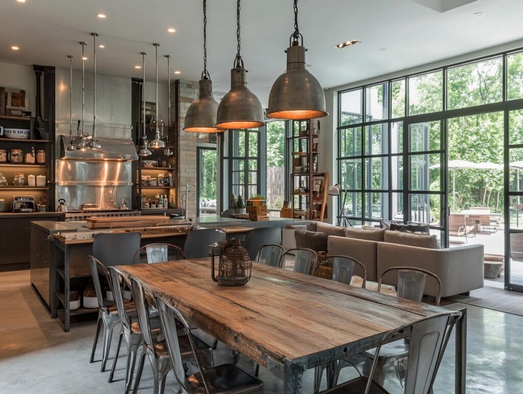 3: Industrial Dining Table in an Open-Plan Kitchen