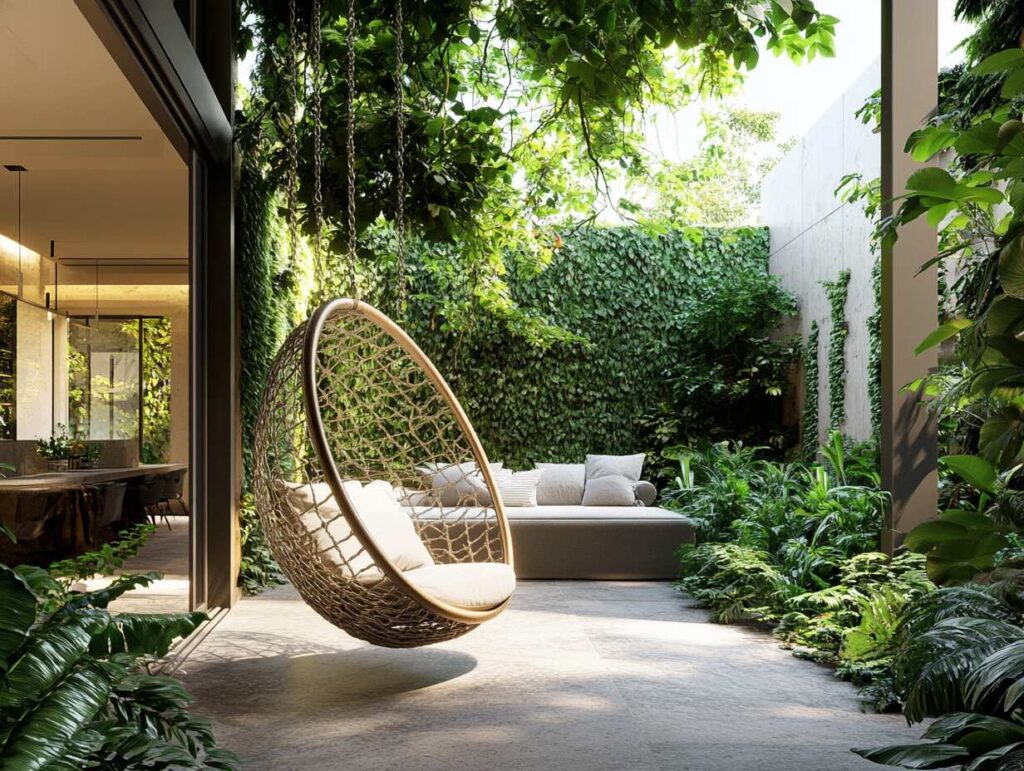 5: Hanging Swing Chair in an Indoor/Outdoor Lounge