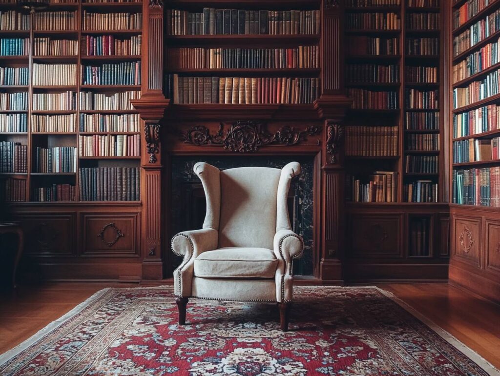 6: High-Back Winged Armchair in a Traditional Library