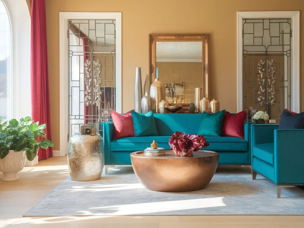 8: Metallic Accents in a Colorful Living Room
