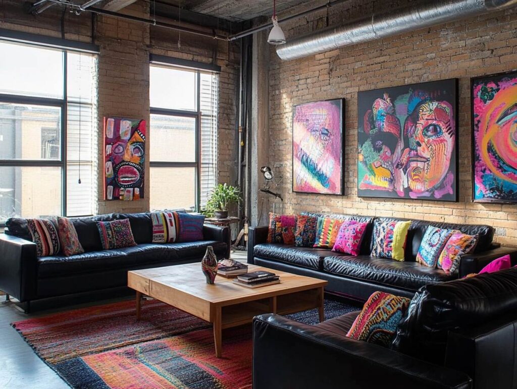 9: Industrial Chic with Colorful Artwork