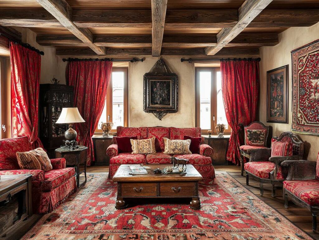 2: Rustic Charm with Bold Red Living Room