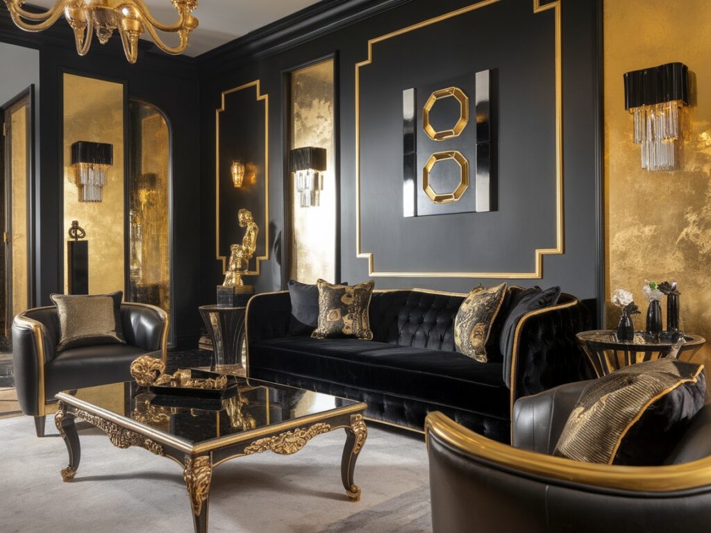 4: Elegant Black and Gold Living Room