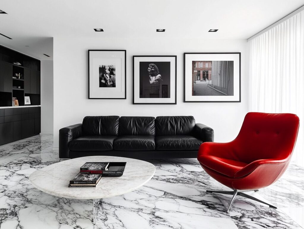 6: Bold Black and White with a Pop of Color