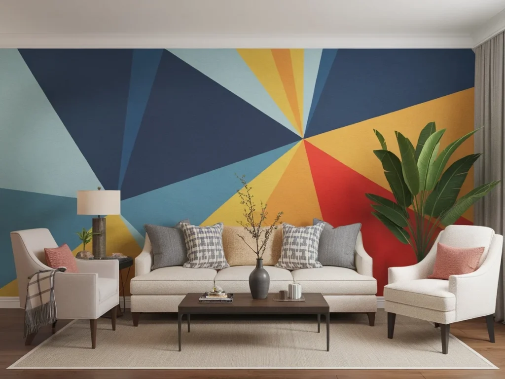 1: Living Room with a DIY Geometric Painted Accent Wall