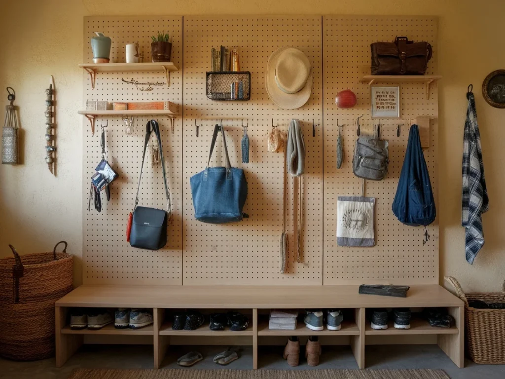 3: Entryway with a DIY Pegboard Organizer Wall
