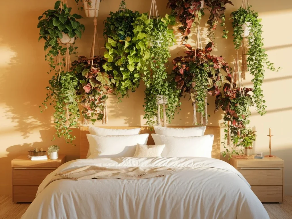 5: Bedroom with a DIY Hanging Plant Wall