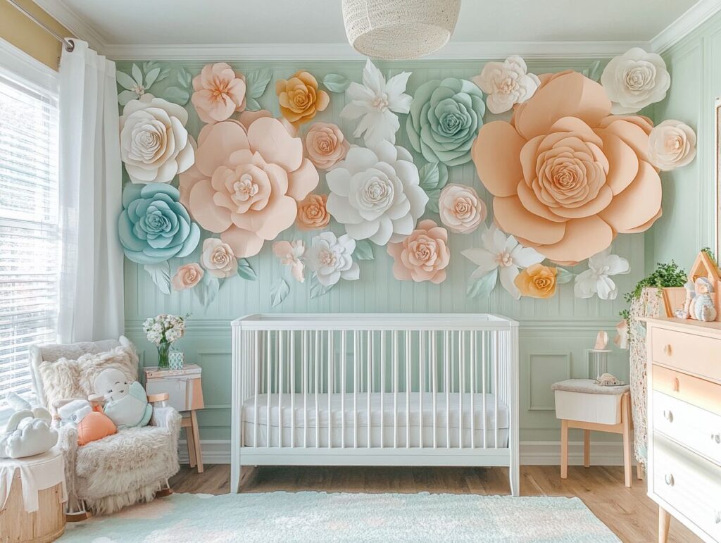 7: Nursery Featuring a DIY Paper Flower Wall