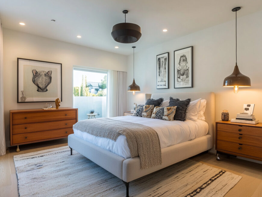If blending different styles is your thing, an eclectic bedroom lets your creativity shine. Combine antique accents with contemporary pieces, layer striking prints with soft, understated fabrics, and curate a space that feels personal and full of character.