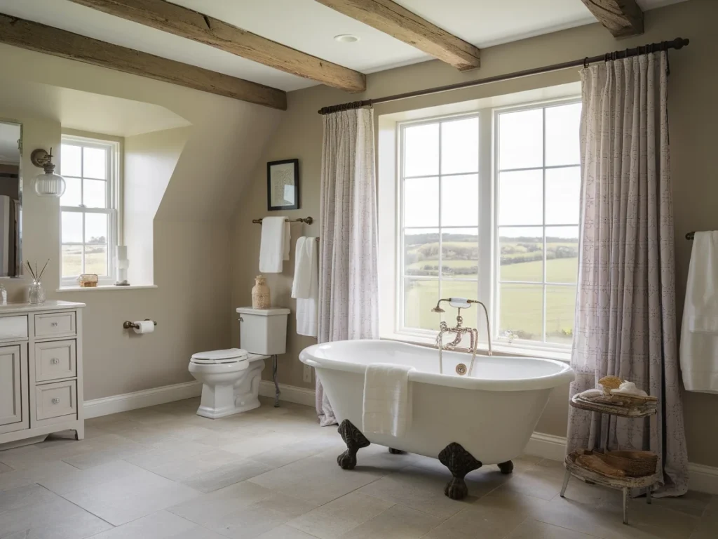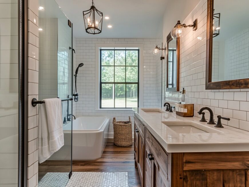 Farmhouse-style bathrooms blend rustic warmth with modern ease, creating spaces that feel inviting, relaxed, and effortlessly timeless. Think natural wood textures, vintage-style fittings, and calming neutral palettes that bring comfort and character together.