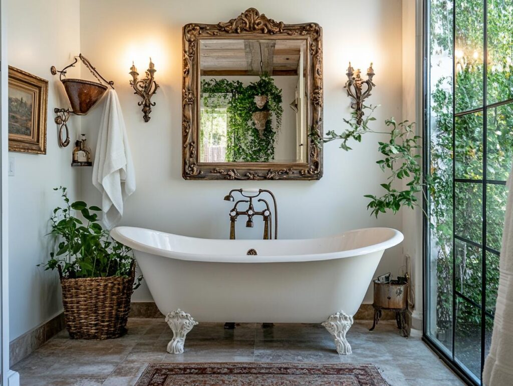 10: Luxurious Bathroom Featuring Decorative Mirror Above Clawfoot Tub