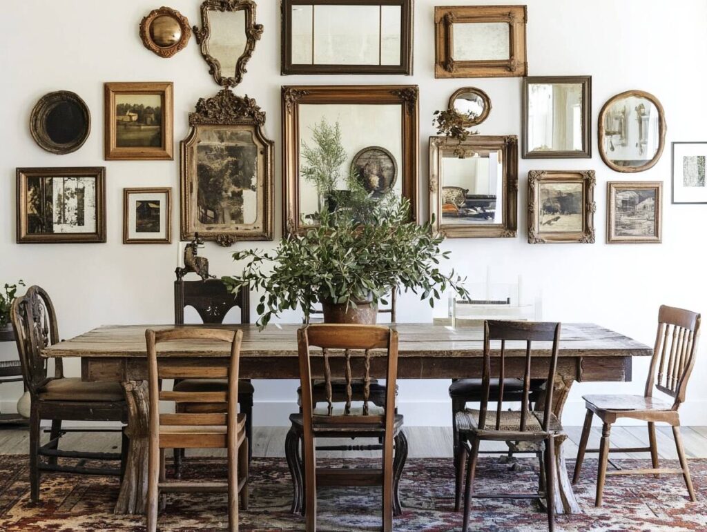 2: Dining Room Gallery Wall of Vintage Mirrors