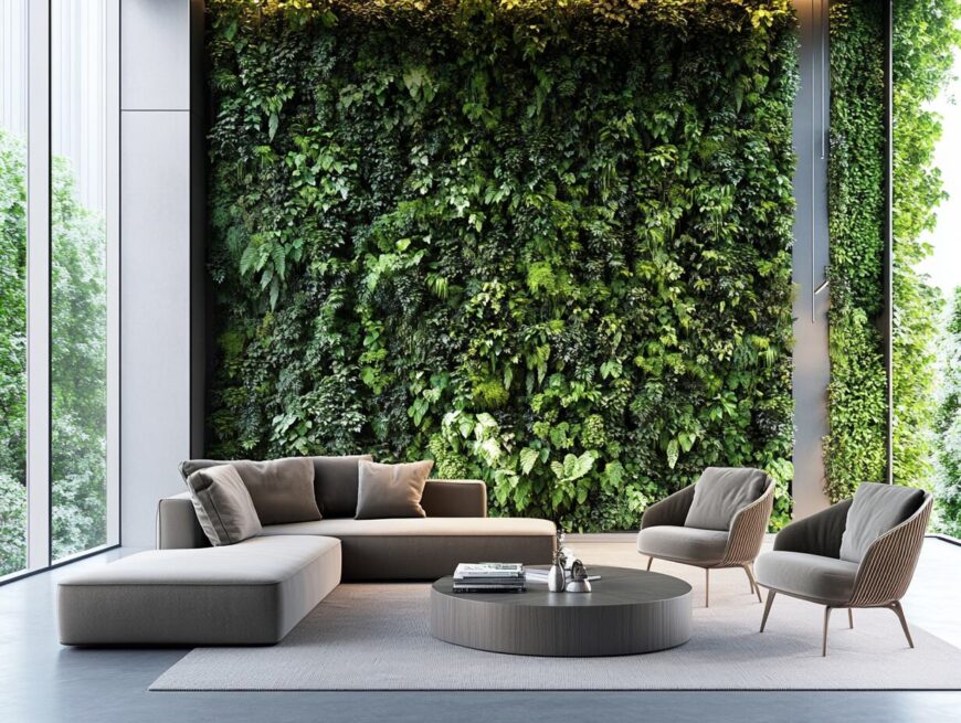 1: Living Room with a Vibrant Green Living Wall