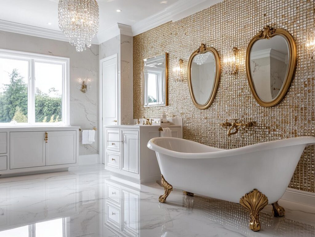 9: Gleaming Metallic Accents in Luxury Bathroom