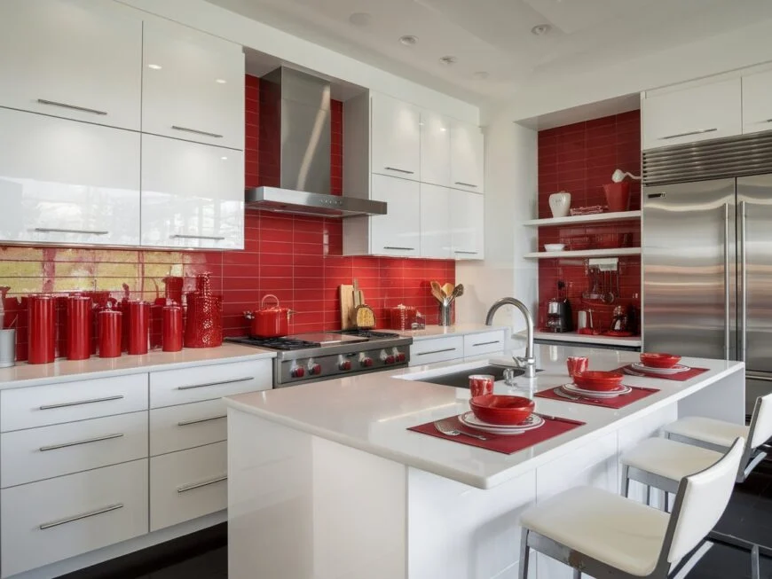 2: White Kitchen with Bold Red Tile Backsplash