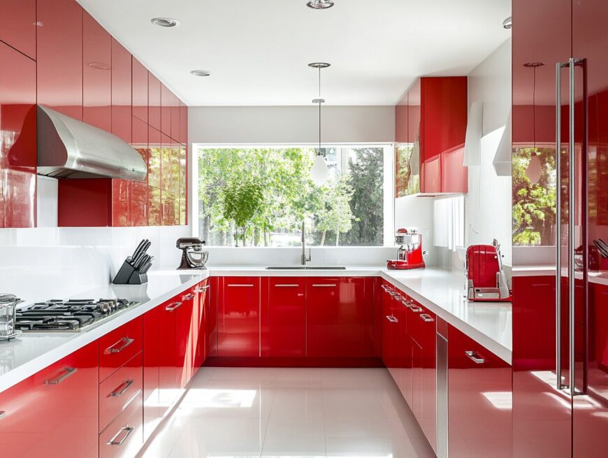 To help you envision the possibilities, I’ve put together 10 stunning kitchen designs you can draw inspiration from. Whether you prefer dramatic red accents or a more understated touch, you’ll find plenty of ideas to bring your space to life.