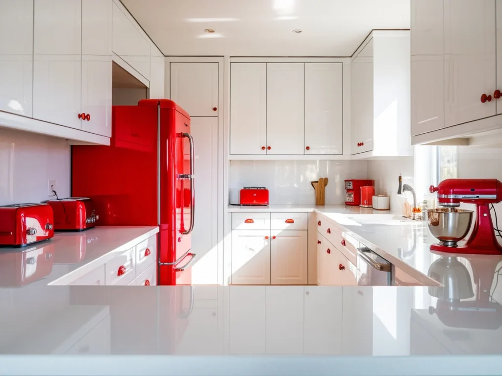 4: White Kitchen with Red Appliances