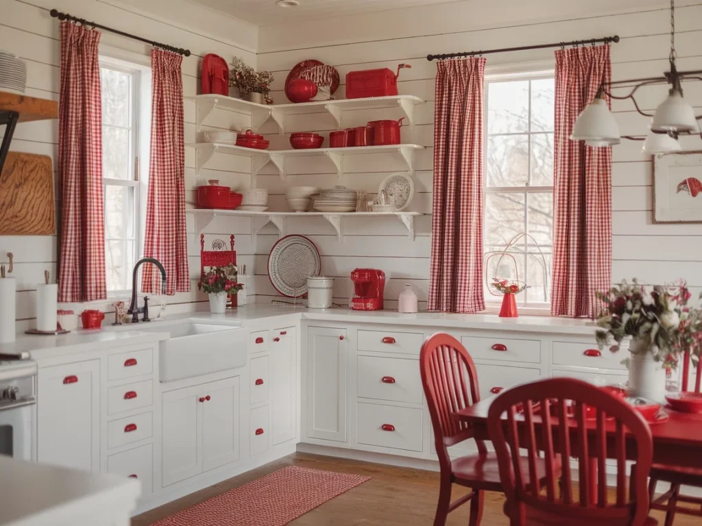 5: Farmhouse White Kitchen with Red Accents