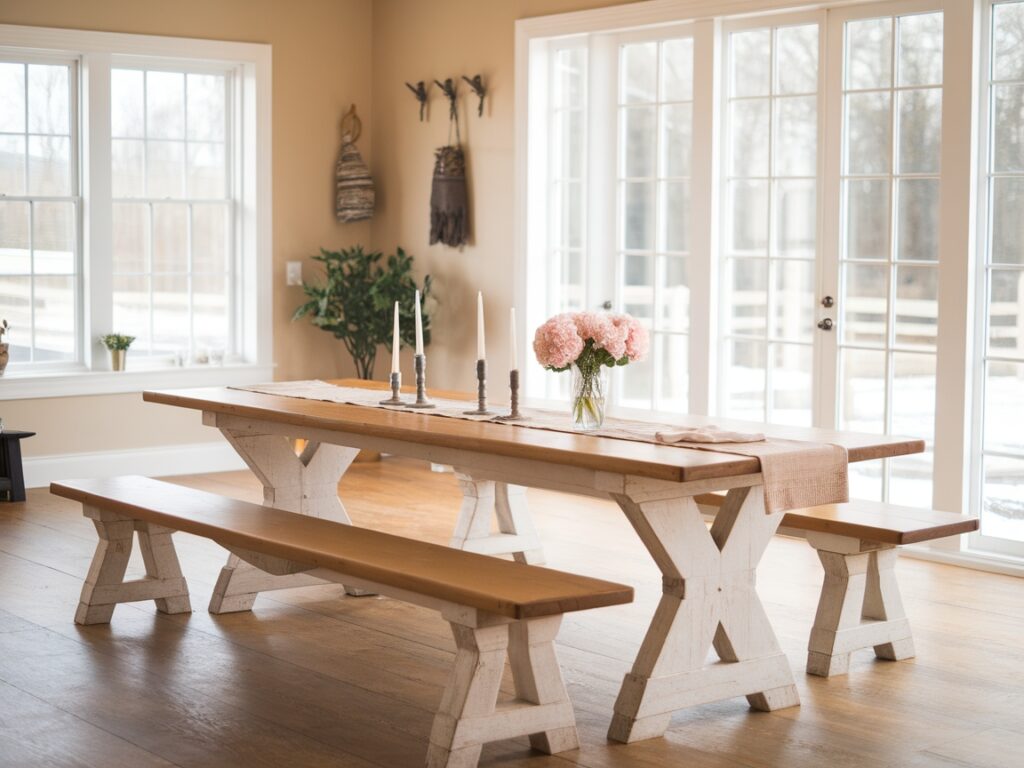 10: Dining Room with Whitewashed Wood Table and Benches