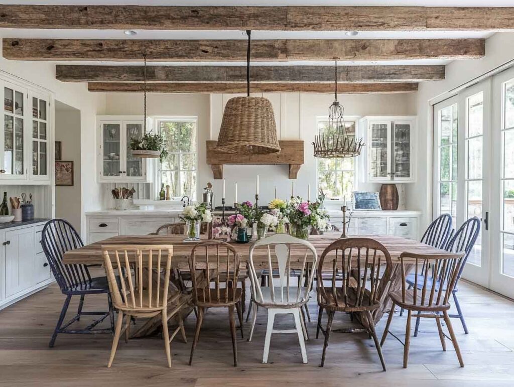 3: Cozy Dining Room with Whitewashed Wood Beams