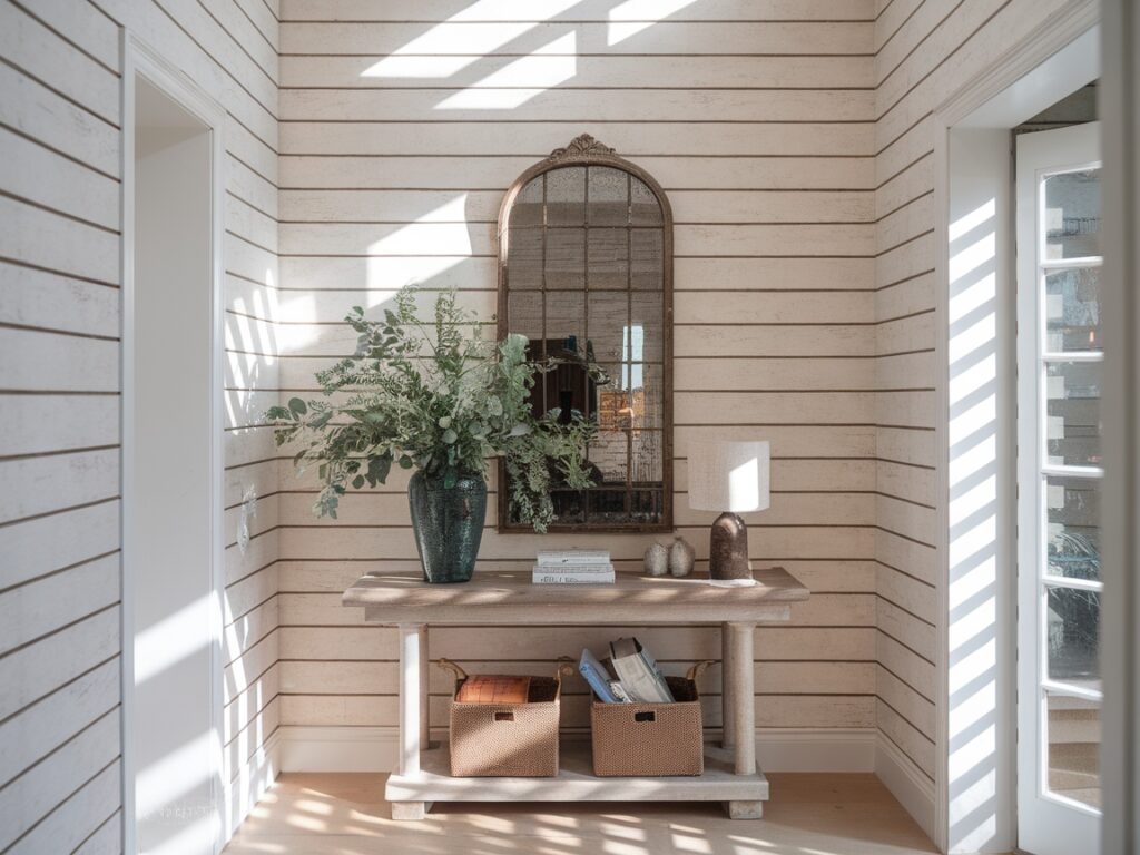 4: Entryway with Whitewashed Wood Shiplap Walls