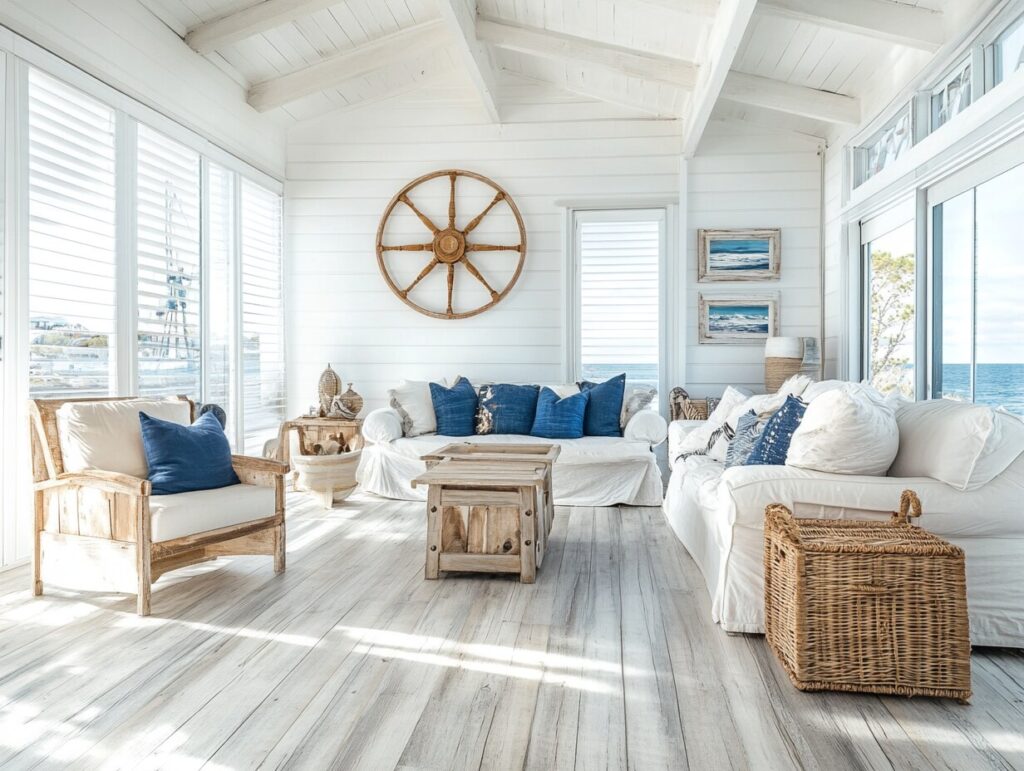 6: Coastal Farmhouse Living Room with Whitewashed Wood Floors