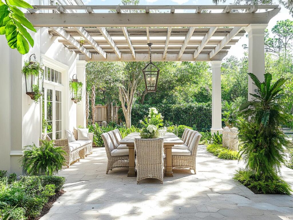 8: Outdoor Patio with Whitewashed Wood Pergola